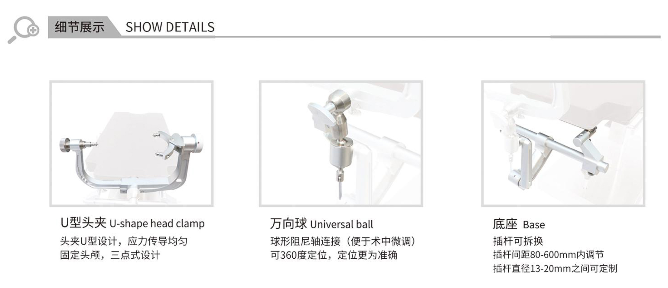 4、人性化設計:頭架設計充分考慮患者舒適度,降低對患者的壓迫感,同時方便醫(yī)生在手術過程中的操作。